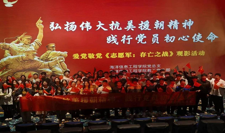为弘扬抗美援朝精神,传承红色基因。2024年10月11日,公司党总支在三亚华夏太古巨幕影城组织开展了“弘扬伟大抗美援朝精神,践行党员初心使命”——观看电影《志愿军:存亡之战》主题党日活动。此次活动共有80多名党员师生、发展对象和入党积极分子员工代表参加。