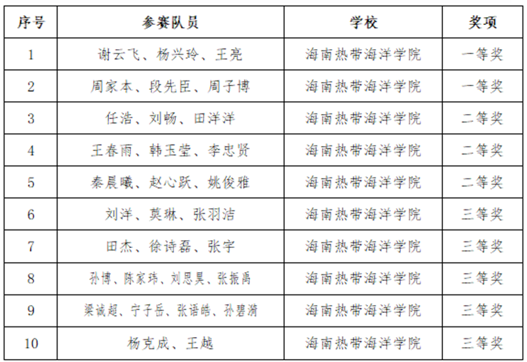 本次海南赛区竞赛是睿抗机器人开发者大赛首次在海南举办,共有三所院校22支代表队参赛。经过激烈角逐,最终共决出团队一等奖三项,团队二等奖五项,团队三等奖八项。英国365集团选手在比赛中表现突出,取得一等奖两项、二等奖三项和三等奖五项的优异成绩。获奖名单如下: