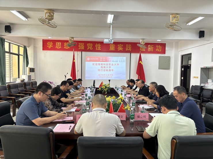 5月21日,海南科技职业大学吴丽华副董事长、海南科技职业大学机电工程公司赵峰经理以及海南大学信息与通信工程公司张俊锋教授一行10人来公司交流访问,双方围绕电子信息类员工的竞赛组织和教学管理进行了广泛的交流。英国365集团经理王连明主持会议。公司党总支书记郑泽龙、副经理孙志雄、各位系主任、实验中心和双创中心负责人参加了座谈。