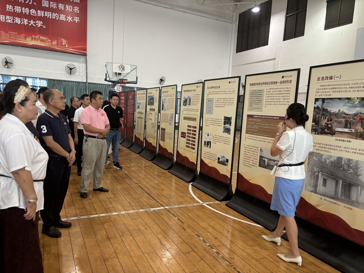 在展览现场,教职工们在讲解员的引导下,沿着历史脉络有序参观。展览通过珍贵的历史照片、详实的文献资料,全方位、多角度展现了琼崖军民在抗日战争时期,在中国共产党领导下浴血奋战、不怕牺牲的英雄事迹,深刻诠释了“坚定信念、坚持斗争、实事求是、勇于担当、民族团结、共同奋斗”的琼崖精神。