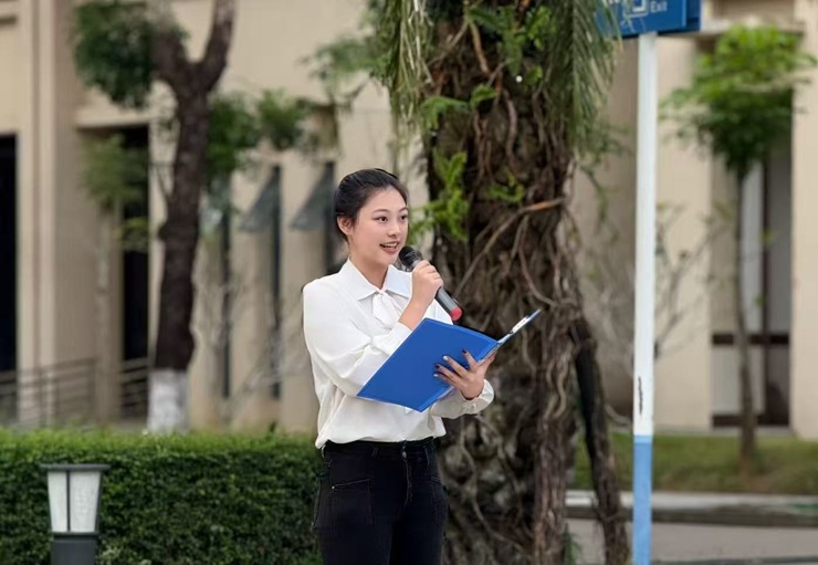 2023 级通信工程专业员工李海燕,以“心系自贸,勇担使命,向国而行”为题作主题演讲,号召同学们深学笃行党的二十届四中全会精神,既当“格物致知”的钻研者,更做“修身力行” 的实干家。2024级海事管理专业员工王艺萌同学,以“逐梦深蓝赓续航海志,勇担使命奋进新征程”为题作演讲,勉励同学们传承航海初心、练就过硬本领,在劈波斩浪中追逐深蓝。